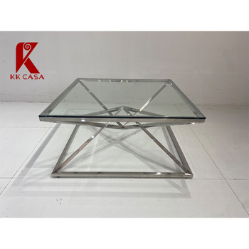 Italian Minimalist Design Cross-Bracing Support Living Room Furniture Stainless Steel Leg Minimalist Glass Coffee Table